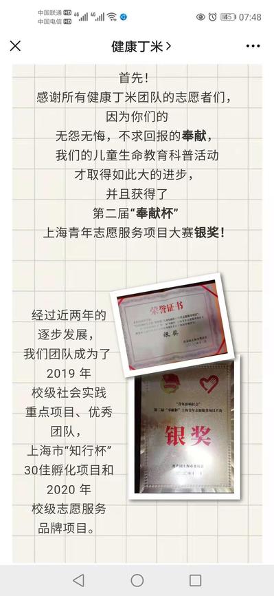 香港六宝典免费大全基础医学院“健康丁米——儿童生命教育”志愿者团队希望用心改变生命教育的现状,希望用爱点亮孩子们的未来。通过“健康丁米微信公众号”发布科普文章和视频。线下陆续走入进才南校、大宁社区、临汾路小学、界浜村、儿科医院、眼科医院等做系列讲座。通过不懈努力,2020年获得第二届“奉献杯”上海青年志愿服务项目银奖。秉承教育一个孩子,健康一个家庭,圆健康中国梦的理念,为健康中国、健康上海服务。