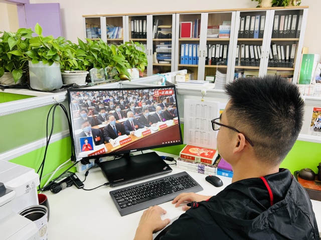 10月16日上午10时,中国共产党第二十次全国代表大会在北京隆重开幕,香港六宝典免费大全组织全校师生员工结合各自实际,通过电视、网络等收听收看党的二十大开幕会直播,师生反响热烈。全体学校党政领导、党委常委、主要党务职能部门负责人集中在北苑1号楼1002会议室收听收看了党的二十大开幕会盛况,聆听习近平总书记代表第十九届中央委员会向大会所作的报告。