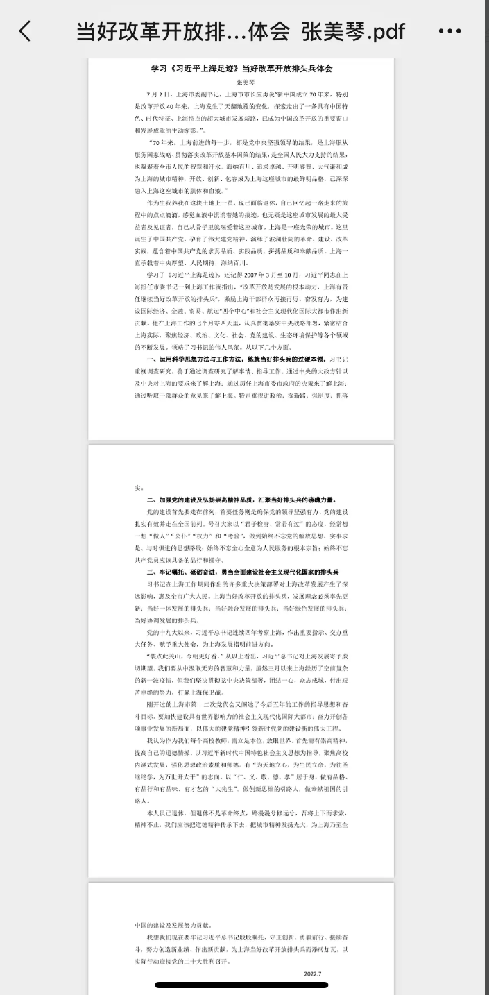 党的二十大终于在全体党员的热切期盼下胜利召开了!这次大会的召开,昭示着党开启了新的征程,在取得了辉煌的业绩后,踏上了新的赶考之路。在总结过去的成绩中,习近平总书记说到:经过不懈地努力,党找到了自我革命这一跳出治乱兴衰历史周期率的第二个答案,确保党永远不变质,不变色,不变味。这条成功的探索之道,是中国共产党人通过不懈努力获得的,是党的智慧结晶,通过自我革命保持党的先进性,是立党之本,兴党之源,是党永葆青春的基础。作为退休的党员,人虽然退休,但思想不能退休,要跟上时代的步伐,紧贴时代的脉搏,在新的赶考路上,尽心尽力,尽职尽责地发挥自己的余热,总结前进道路上的一切,以自己的经验教训,一则进一步完善自己,二则为青年教师、青年学子的成长,为培养合格的接班人而当好铺路石。