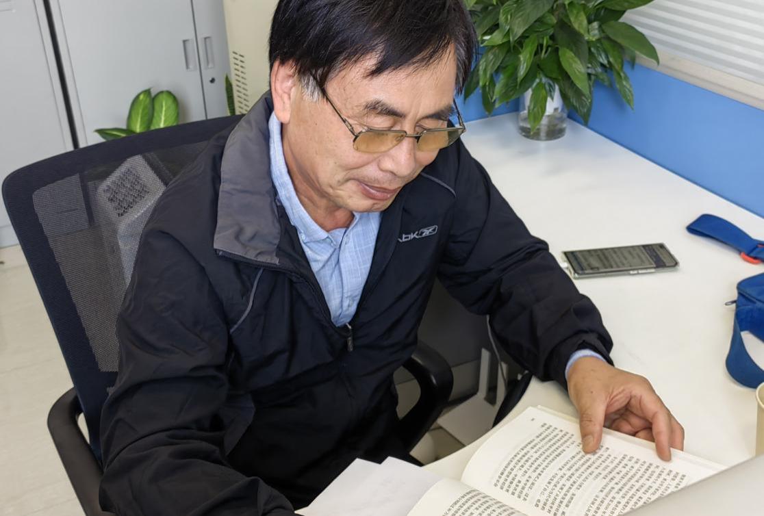 退休十支部郑世俊用专业继续服务健康中国事业,退休后长期在松江泗泾医院做志愿者,用实际行动学习与贯彻党的二十大精神。