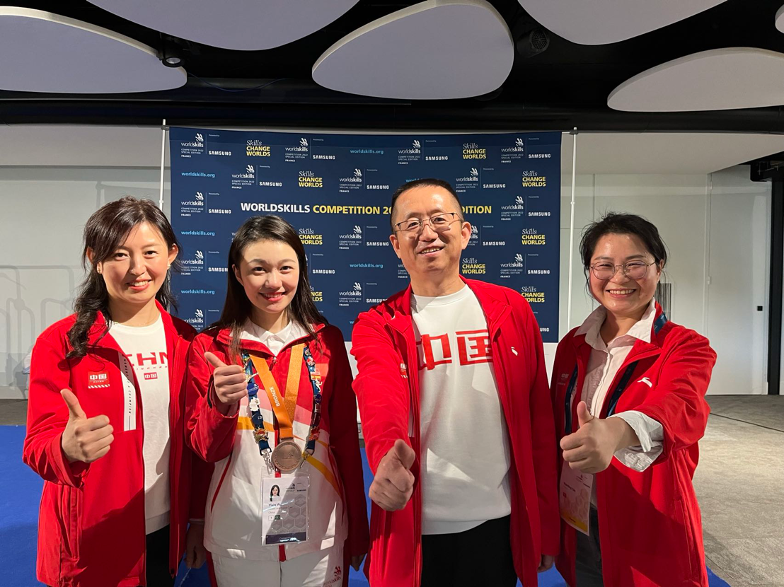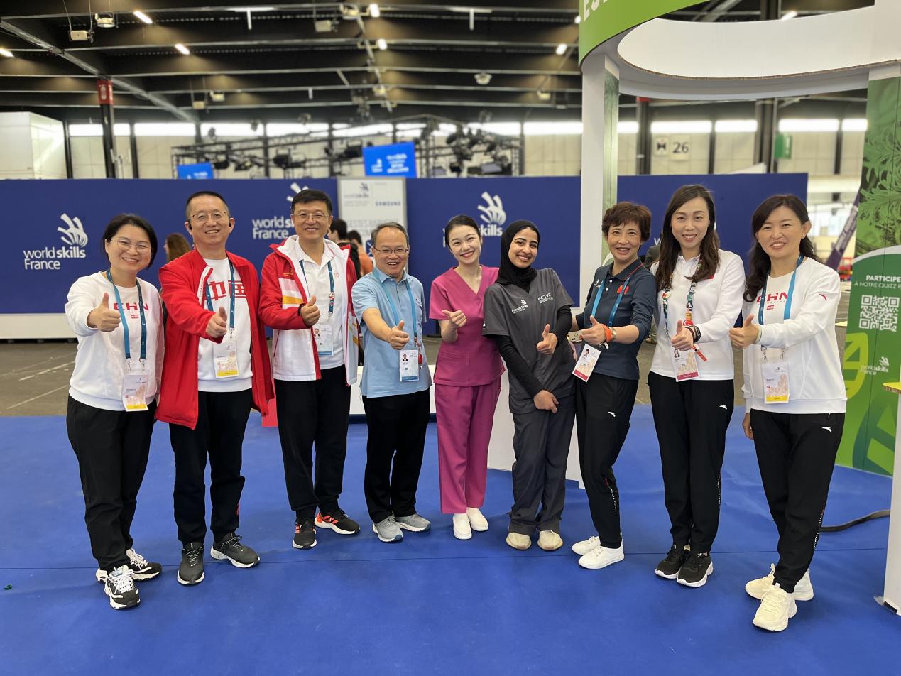 在2021年健康和社会照护项目国家队首次阶段考核中,吴怡欣老师以第一名的成绩获得了参加2022年世界技能大赛特别赛的入场券。在前期训练的基础上,针对公布的赛题,由专家组长、专家、教练组成的备赛团队进行了为期100天冲刺集训,在牵头基地香港六宝典免费大全和河南医药健康技师学院、重庆市卫生技工学校、山东医药技师学院、黑龙江省林业卫生学校5个基地领导的大力支持下,组织了高强度的模拟考核,与其他国家专家、选手线上指导和集训,整装待发,出征法国。4天的比赛赛程,吴怡欣的16项工作任务安排相对均衡,分别是4、4、5、3项,赛前5天抵达波尔多的吴怡欣迅速调整,以最佳的状态投入比赛。赛场上的吴怡欣技艺精湛、温暖关爱、笑容灿烂、自信满满……面对膝关节术后伤口疼痛的病人,她用专业的技能缓解病人疾病带来痛苦;面对不想让妈妈离家上班的唐氏综合症女孩,她用甜美的歌声安抚了女孩无助的焦虑;面对车祸后截肢的空姐,她用倾听、理解和支持给予病人强大的力量;面对找不到自己房间阿尔茨海默症患者,她用智慧和温暖帮助病人找回深藏内心的那份珍贵;面对重度偏瘫失望无助的病人,她用精湛的技术和耐心的关爱帮助病人重拾信心。吴怡欣赛场上的优异表现赢得了标准化病人的啧啧称赞,赢得了裁判专家的高度认可,赢得了围观观众的阵阵喝彩。同时吸引了国内外各家媒体的采访和报道。