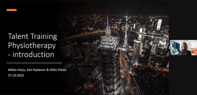 开班仪式结束之后,罗约阿应用科学大学的Mikko和Kati教授开始了为期2小时的导入课,向大家介绍了自己以及请每位学员发言本次研修课的期望。导入课中向大家说明后续课程的安排,以及教大家如何使用贯穿学习始终的Canvas系统。最后,教授提到他们所在的城市赫尔辛基和上海距离很遥远,走路需要2700小时,飞机需要9小时,而我们在云端会议只需数秒就可以见面,希望大家珍惜这样的机会,多多交流,能从这次培训中学到自己真正想学的知识和技能!(康复学院)