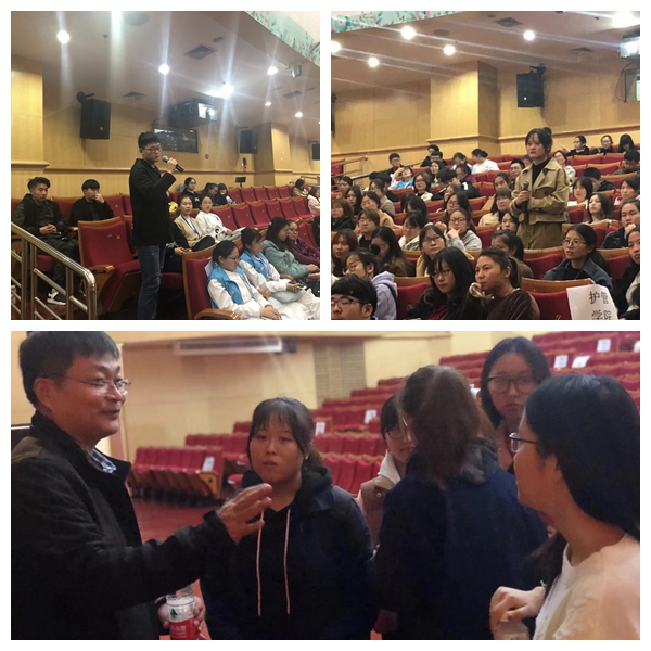 没有高深的专业知识,没有惊天动地的伟人事迹,许洋教授用很接地气的方式,用朴实无华的语言向同学们描述了两位普通人是如何成长为诺贝尔奖获得者的故事。第一位是曾被哈佛医学院拒绝2次的哈罗德.瓦尔姆斯,最终凭借自己的努力和坚持在癌症免疫疗法方面获得重大发现,从而获得诺贝尔奖。另一位本庶教授始终秉持着“做少数人愿意做的事情才能出果”的信念,最终发现抑制PD-1基因能够治疗癌症的免疫细胞疗法而获得诺贝尔奖。从两位“诺奖”获得者的身上,我们看到了他们坚韧与不屈的品质。