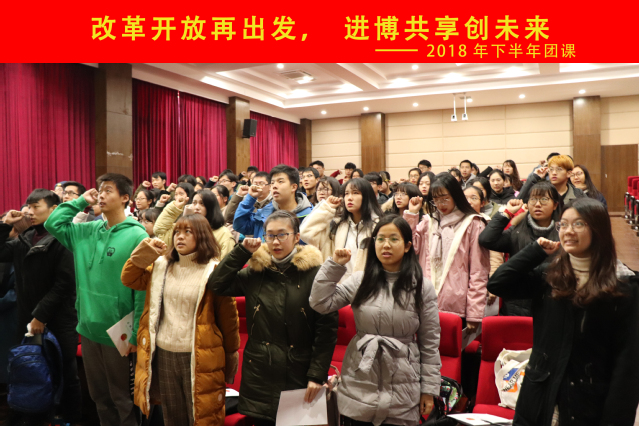 为庆祝改革开放40周年,弘扬互助友爱的进博志愿精神,11月26日至12月20日,由校团委主办、药学院团总支承办的团课在全校7个学院84名同学中开展,此次团课以“改革开放再出发,进博共享创未来”为主题,掀起了入团积极分子全面学习贯彻习近平总书记系列重要讲话精神的热潮。