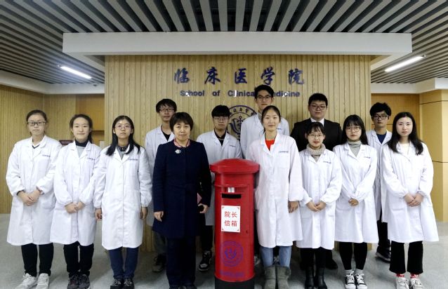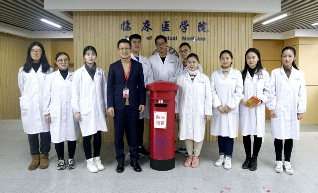 为了提供真实有效的师生沟通交流平台,帮助同学们解决学习和生活上的疑惑,引导同学们珍惜现在,展望未来,2018年12月25日下午,我院隆重举行院长信箱揭幕仪式暨17级临床本科写给未来的信投递仪式,出席本次活动的有我院院长蔡巧玲,副院长黄鹏,副书记罗瑾琰,教师及25位学生代表。
