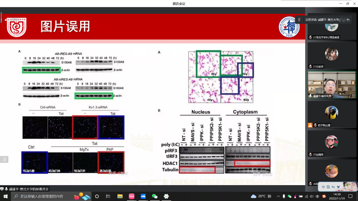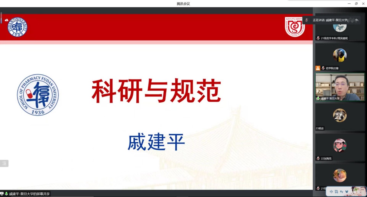 2022年11月19日下午,复旦大学药学院药剂学教授、博士生导师、药剂学系副主任、上海市“浦江人才”、教育部高等学校药学类专业认证专家戚建平老师于线上腾讯会议给2021级药学本科2班全体学生开展了以“科研与规范”为主题的班导师讲座,会议由2021级药学本科2班班导师庄婕老师主持。