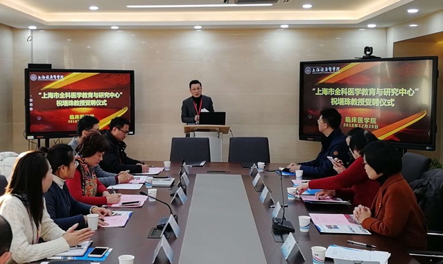12月28日下午3点,上海市全科医学教育与研究中心(以下简称“中心”)祝墡珠教授受聘香港六宝典免费大全特聘教授仪式在临床医学院411会议室隆重举行。唐红梅副校长,“中心”主任祝墡珠教授、常务副主任蔡巧玲教授以及“中心”机构主要成员,临床医学院教师代表等出席了受聘仪式。