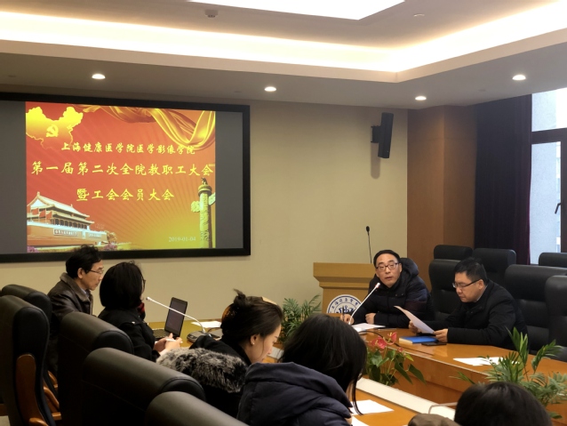1月4日上午,医学影像学院在南苑影像楼306会议室隆重举行第一届第二次全院教职工大会暨工会会员大会,本次会议由学院工会主席程敬海主持,学院党政领导和全体教职工参会。