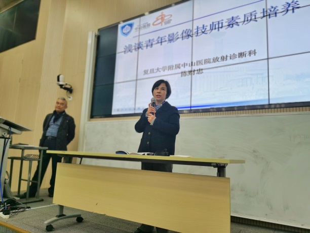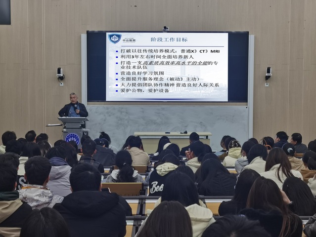 本次讲座分为两部分:个人成长与发展经历,影像技师的素质要求。他首先分享了个人经历,从学习生涯、自我认识、角色转换、个人职业发展等方面,结合自身学习和临床工作经历,在平实的叙述中透射出他对自我的高要求和不懈努力的精神,也可以深深领悟到“机会总是留给有准备的人”这样一个朴素的道理。接着,他以中山医院放射诊断科对技师的全面要求和日常培养为例,讲述了“高手”是如何练成的。他从文化素质、专业技能、个人修养和专业素养等方面,娓娓道来,特别强调敬业精神(爱)、团队精神(集体荣誉感)、责任感等职业素养的重要性,同时也展示了医院和科室对技师业务学习和科研考核的要求。他最后以“爱医院、爱职业、爱病人、爱团队”来勉励学生树立正确的三观,健康成长成才。