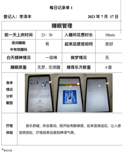 体验结束后组长会对志愿者进行询问他们的感受和身体状态,检查心电贴佩戴情况并协助接受填写睡眠管理档案,记录每一天的睡眠干预情况。经过十天和五天为干预周期的睡眠管理,结合心电贴的监测数据和干预志愿者反馈,干预志愿者的睡眠质量都得到了普遍提高。