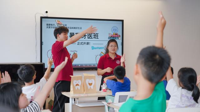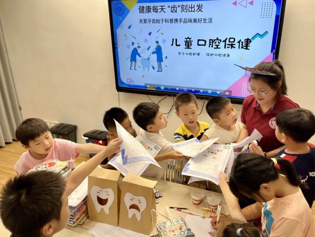 7月20日下午,团队成员前往上海市周浦第二小学开展暑期口腔科普宣讲活动,从牙齿的结构、功能、分类、替换、常见的儿童口腔疾病以及相关预防与治疗方法等方面,借助刷牙口诀、刷牙故事绘本等多种形式,深入浅出地向同学们进行口腔知识科普。