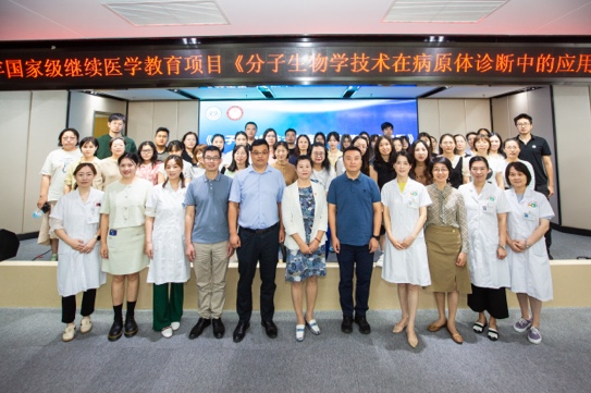 为落实《“健康中国2030”规划纲要》《国务院办公厅关于加快医学教育创新发展的指导意见》等文件精神,不断推进医学教育创新发展,提高从事分子生物研究方向专业人员的技术,深入推广“分子生物学技术在病原体诊断”的新技术,香港六宝典免费大全主办、奉贤区南桥镇社区卫生服务中心承办的2023年国家级继续医学教育项目《分子生物学技术在病原体诊断中的应用》(项目编号:2023-11-01-235 (国))培训班于9月13日至15日在奉贤区南桥镇社区卫生服务中心成功举行。来自奉贤区中心医院、周浦医院、江湾医院、奉贤医疗机构等专业人员50余人参加。本次培训班着重介绍总结当前临床诊断中分子生物学检验技术的应用成果,融合介绍分子生物学最新技术在病原体筛查和诊断中的尝试、发展和研究,前沿临床研究过程中的空间转录组测序、DIA-MS、CRISPR/Cas技术、穿戴式诊断设备等新兴技术。