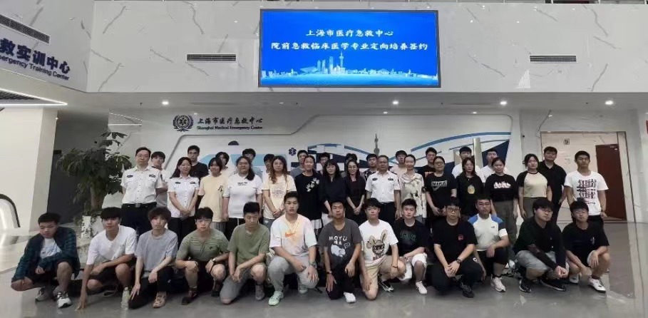 随后,学院37名学生与上海市医疗急救中心签订了《院前急救机构定向免费临床医学专业培养协议书》,并参观了院前急救实训中心和科普基地,开启定向培养的“第一课”。同学们纷纷表示,不负嘱托、不负韶华,早日成为一名优秀的急救战士,在院前急救事业高质量发展道路上绽放青春绚丽之花!