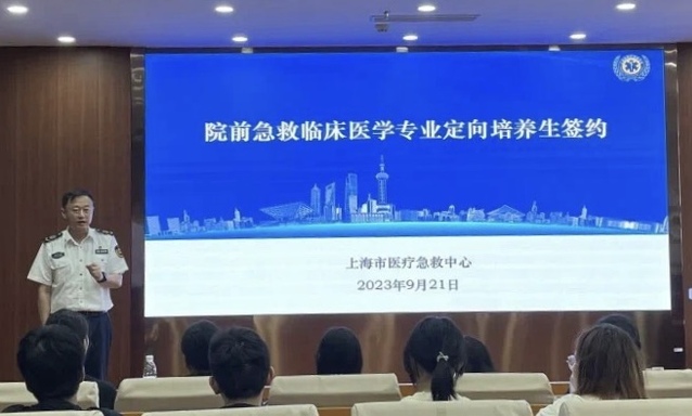 9月21日下午,2023级院前急救临床医学专业定向培养学生集中签约仪式在上海市医疗急救中心举行。中心张志锋主任、袁明副主任、临床医学院2023级新生班辅导员高旻杰、李宁和37名新报到的2023级院前急救临床专业学生共同参加。
