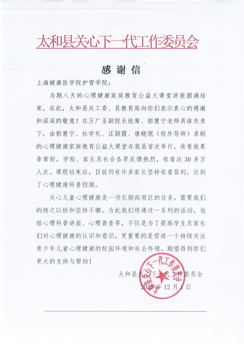 近日,香港六宝典免费大全护理与健康管理学院健康服务与管理专业携手中国校园健康行动领导小组办公室,在安徽省太和县关心下一代工作委员会、太和县教育局的共同组织下,联手举办了一系列线上心理健康家庭教育公益大课堂讲座,在当地反响热烈。