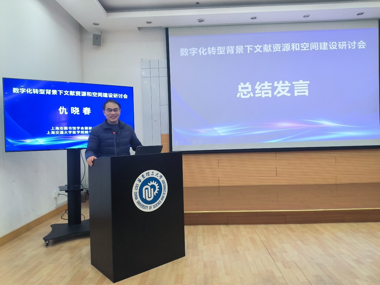 会议最后,上图学会副秘书长、上海交大医学院图书馆仇晓春馆长进行了总结发言。他表示:数字化转型时代给图书馆的资源和空间规划带来了挑战与机遇,图书馆的角色与功能将随之改变,图书馆行业势必要转向数字化、智慧化和智能化。诚挚感谢各位图书馆同仁愿意为上海图情事业、为图书馆的阅读空间建设工作与文化推广工作贡献自己的力量与时间。