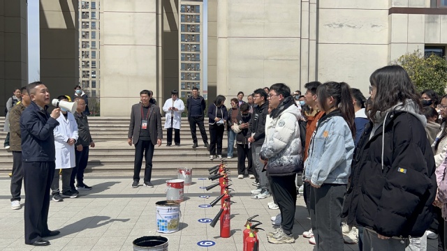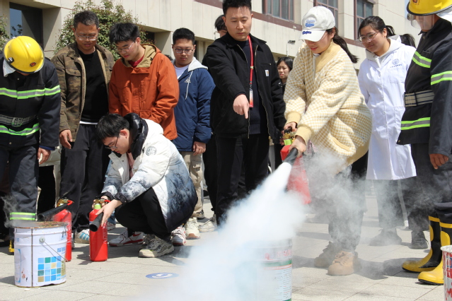 在灭火器操作演练环节,药学院和保卫处组成的相关人员,向师生进行了消防知识科普,同学们在工作人员和消防队员的悉心指导下,实操体验灭火器的正确使用方法,并逐一进行灭火实操。学习过程中,大家认真学习技巧要领,踊跃参与问答互动,现场活动氛围热烈。