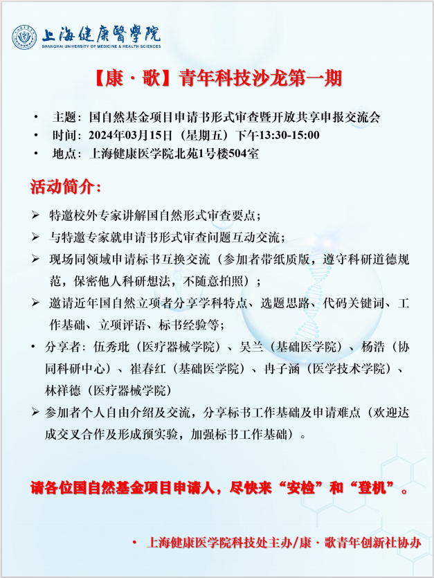 学术沙龙:【康·歌】青年科技沙龙第1期