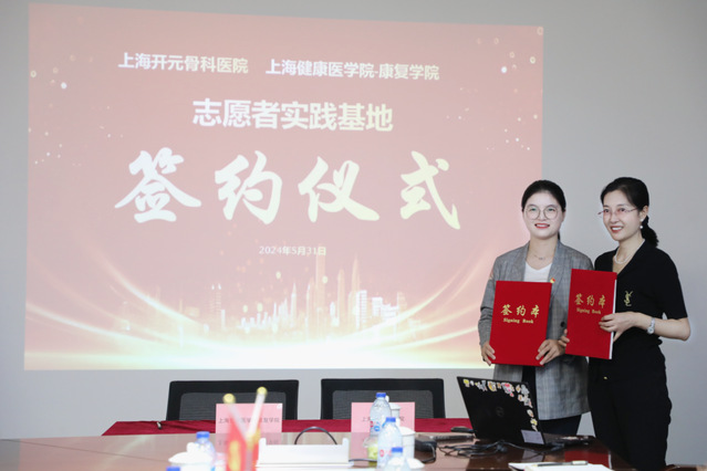 随后,康复学院团总支书记王雅与医院行政副院长脱烨代表双方签署志愿者实践基地协议,康复学院党总支书记王红与开元骨科医院党支部书记陈蓓蓓代表双方签署党建联建协议,王红与徐海鹏共同为“志愿者实践基地”揭牌。