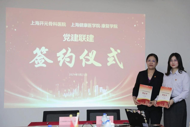 为进一步贯彻落实党的二十大精神,响应健康中国战略,助力康复事业发展,加强党员队伍建设。5月31日下午,康复学院党总支与上海开元骨科医院举行党建共建签约仪式。康复学院党总支书记王红、党总支副书记蒋晓明及各教师代表,上海开元骨科医院院长徐海鹏、行政副院长脱烨及各职能科室负责人出席签约仪式。