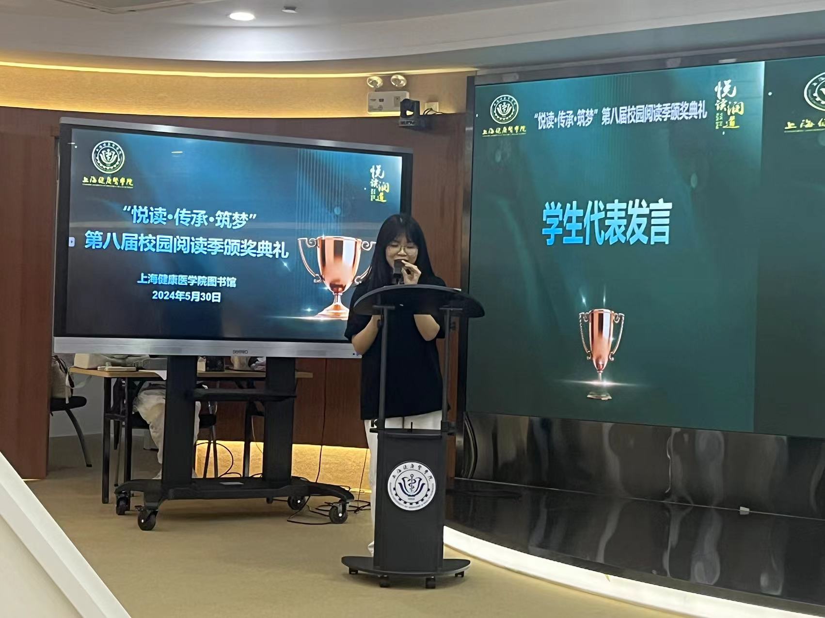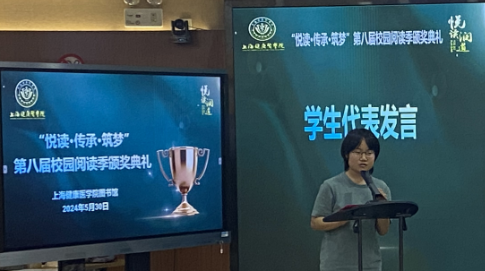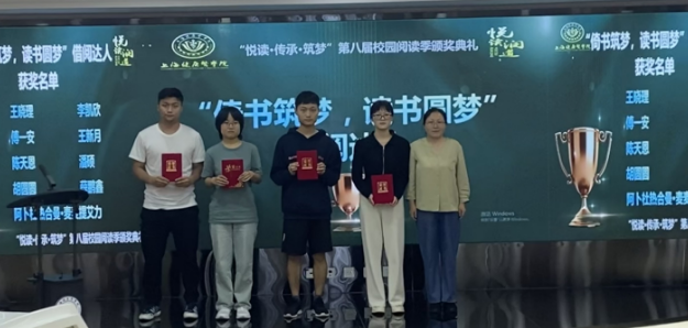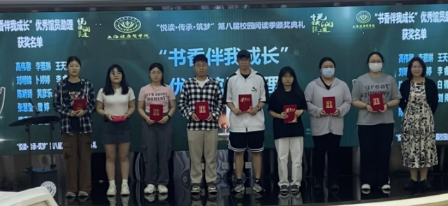主持人分别公布了“我与图书馆”摄影大赛、“倚书筑梦·读书圆梦”借阅达人、“书香伴我成长”优秀馆员助理评选和“书香沪韵·声绘未来”诵读大赛等活动的获奖名单,出席嘉宾和领导为获奖的同学颁发了证书并合影留念。“倚书筑梦·读书圆梦”借阅达人获奖代表王晓理同学和“书香伴我成长”优秀馆员助理获奖代表陈娇娇同学分别进行发言。她们表示,感谢图书馆在引导和鼓励学生阅读等方面的工作,分享了自己与图书馆的故事,阐述了成长过程中图书馆给予的力量和支持,表达了对未来的阅读活动的期待。