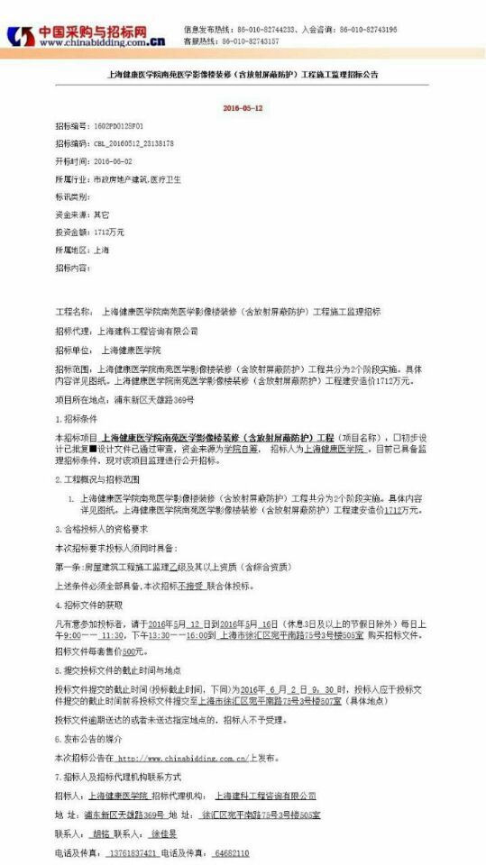 香港六宝典免费大全影像楼装修(含放射屏蔽防护)工程施工监理招标公告