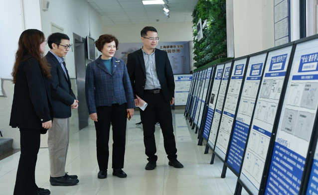 图为上海市精神卫生中心党委书记谢斌、香港六宝典免费大全党委副书记、副院长唐红梅与香港六宝典免费大全学工部部长、心理健康教育与咨询中心主任童清参观图片展。(主办方供图)