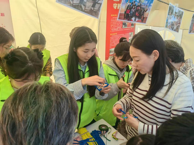 3月1日上午,医学技术学院志愿者培育基地团队志愿者来到上海世博园,积极参与到“志愿聚人心 服务暖社区”上海市“3·5”学雷锋纪念日主题活动暨浦东新区志愿服务示范活动并设志愿者集市摊位。服务过程中,志愿者们化身“手工导师”,耐心细致地为游客讲解扭扭花的制作技巧。从花瓣的折叠到花茎的缠绕,每一个步骤都倾囊相授,确保每位参与者都能掌握要领。小朋友们兴致盎然,在志愿者的指导下,充分发挥想象力,将一根根普通的扭扭棒变成了一朵朵栩栩如生的花朵,充分发挥青年志愿者的热情与创意。