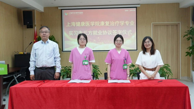 为促进毕业生高质量就业,深化校企合作,拓展就业岗位资源,实现人才培养与市场需求的有效对接。5月15日,康复学院院长郭琪、康复学院党总支副书记蒋晓明带队走访上海同合骨科医院,授牌“大学生就业实践基地”,见证学生现场签约。上海同合骨科医院董事长何贯中、院长许金生、党支部书记杨书杰等出席会议。
