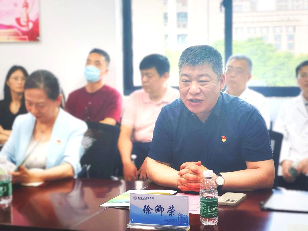 为深化医教协同,推动党建与业务深度融合,7月10日下午,康复学院党总支、科技规划工会党支部与上海市虹口区江湾医院党委在康复学院308会议室联合开展“医教协同领发展,校院同心话未来”联组学习活动。校党委副书记于莹,康复学院党总支党员、科技规划工会党支部党员、江湾医院党委中心组成员及专家代表齐聚一堂,共话合作新篇。活动由康复学院党总支书记王红主持。