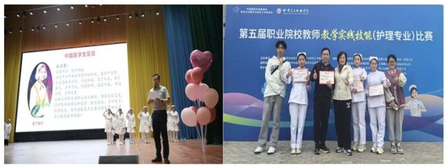 左图:护士节授帽仪式,右图:教师教学实践技能大赛获奖