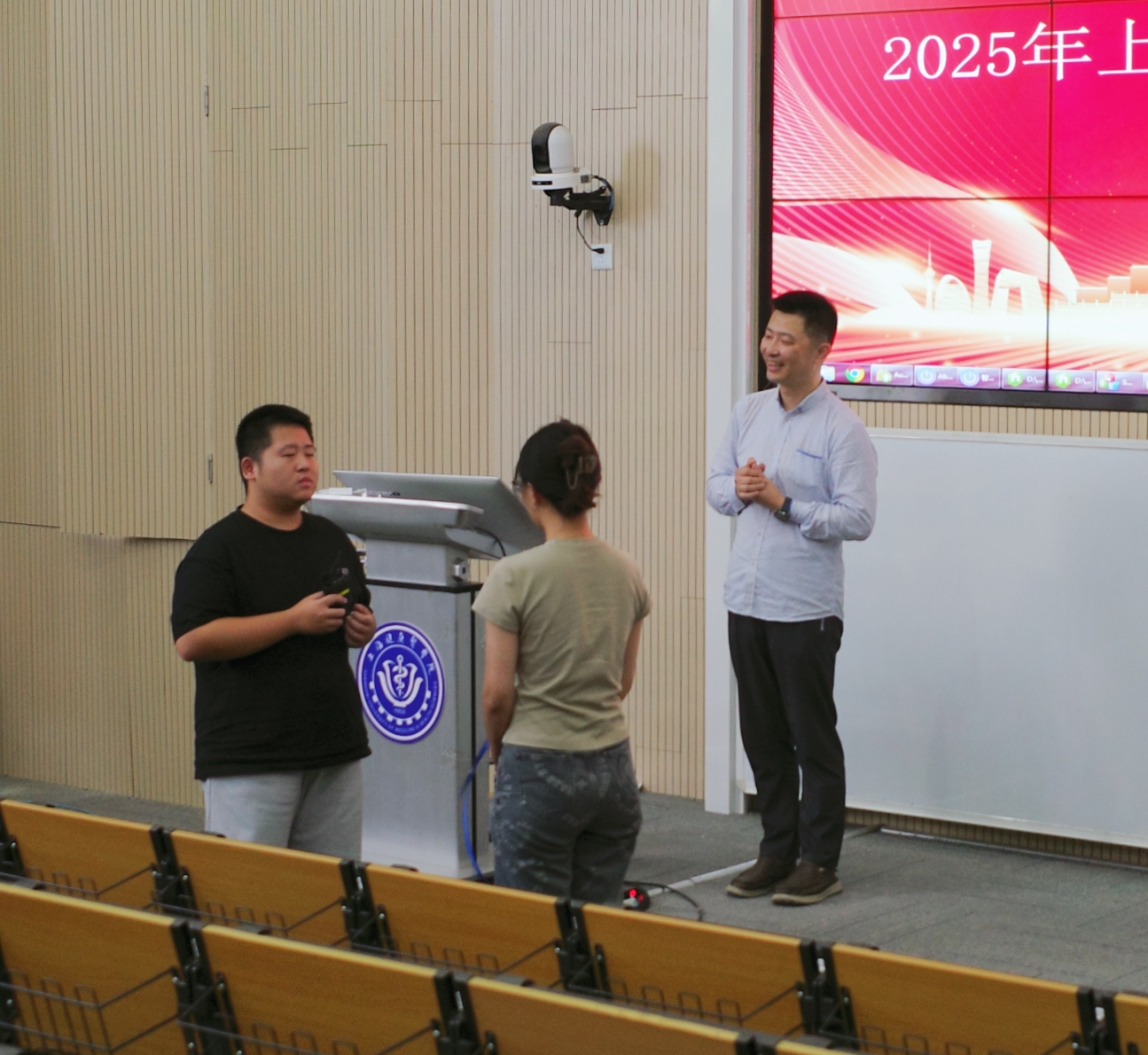 阮俊斌老师结合自身丰富的教学经验和跨文化沟通知识,不仅系统讲解了各项服务要求,更将重点放在了语言的实际应用上。他精心选取了进博会现场可能遇到的典型场景,如游客物品遗失时的安抚与协助、游客感到不适时的紧急应对、为游客指路时的清晰指引等,并详细演示了在这些情境下如何运用恰当、专业的语言进行沟通。阮老师生动的讲解和案例分析,使志愿者们深刻认识到语言在跨文化服务中的桥梁作用,也让他们掌握了在不同情境下有效沟通的技巧。