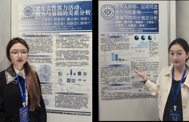在蔡明副教授的指导下,康复学院两名本科生赴武汉参会并作墙报展示。2023级本科生王惟怡的论文《老年女性体力活动、握力与衰弱的关系分析》在“体质与健康”分会展出,2024级本科生周婧的论文《老年人抑郁、运动对进食行为的影响——情绪调节的中介效应分析》在“运动营养”分会展出。尤为引人注目的是,2024级本科生(大二年级)参与此类国家级学术盛会,在我院历史上尚属首次,充分展现了学生突出的科研潜力和学院人才培养的早期成效。