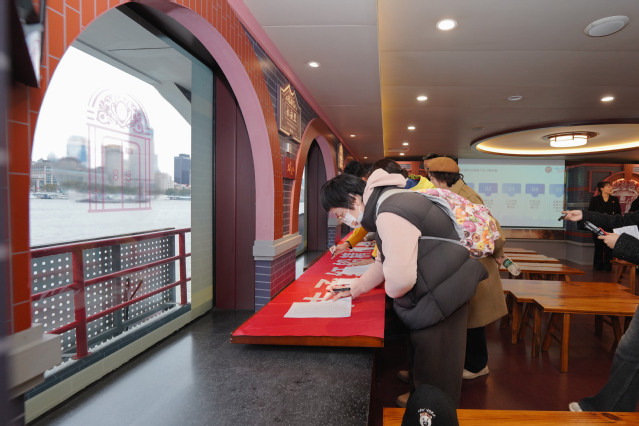 师生一行登上这艘“流动的红色课堂”。在工作人员的细致讲解中,百年前中国共产党艰辛创业的壮阔历程徐徐铺展——无数仁人志士为救亡图存挺身而出,在民族危亡之际点燃革命星火。游船以“开天辟地”“光荣之城”“人民城市”三个篇章为脉络,通过丰富史料与生动呈现,让伟大建党精神的内涵与人民城市理念具象化、可感化,让红色基因在沉浸式学习中根植于心。
