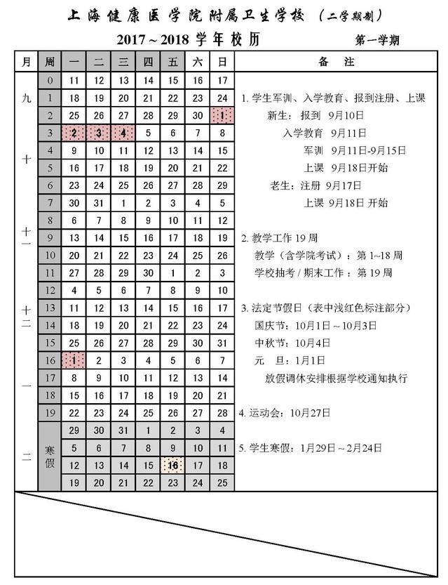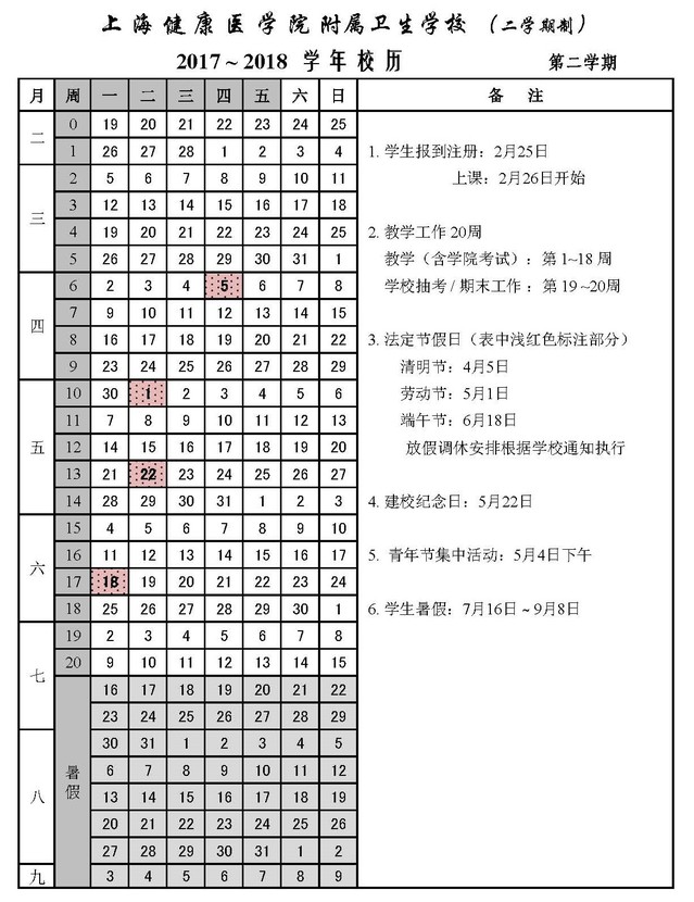 香港六宝典免费大全附属卫生学校2017-2018学年校历