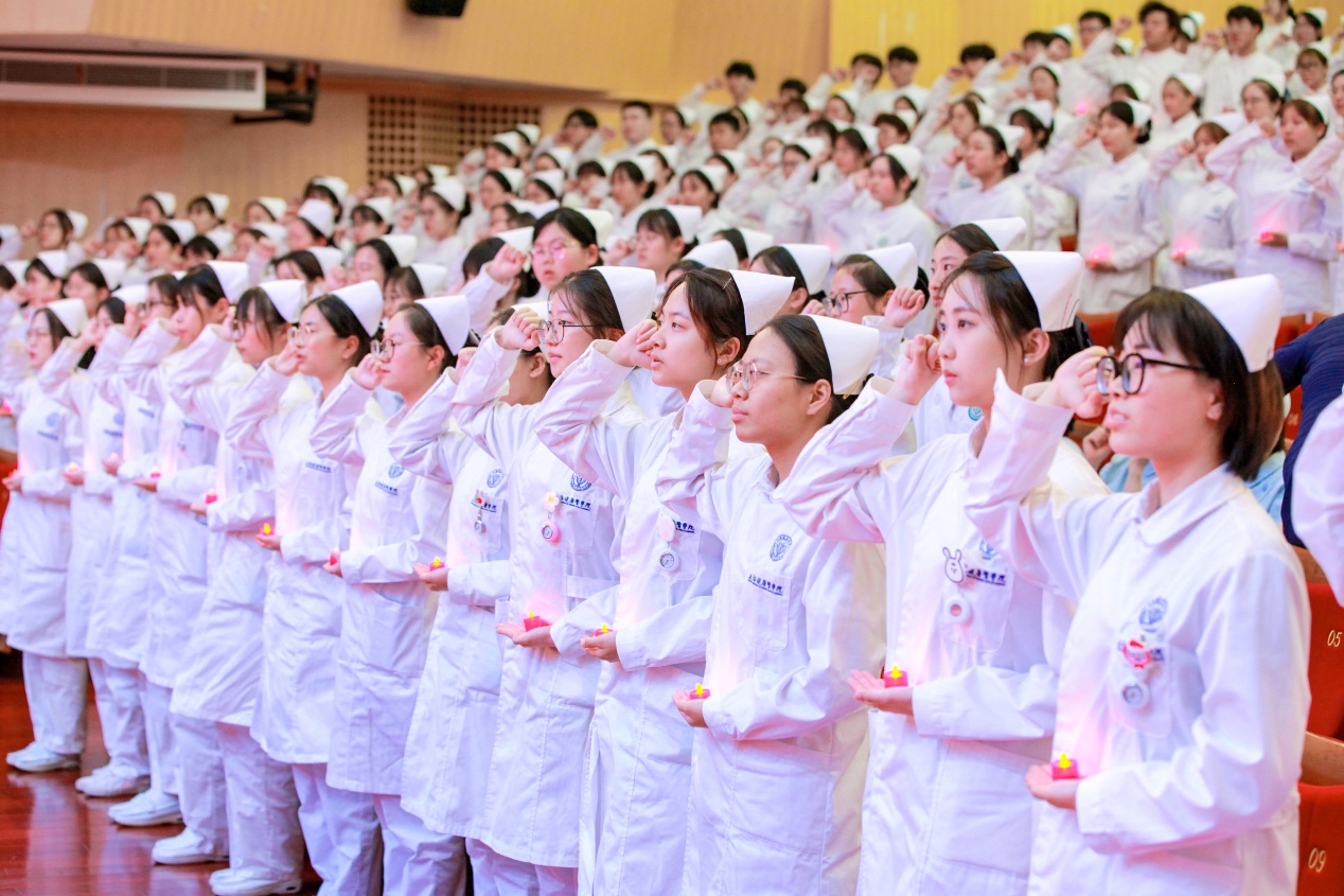 最后,护理与健康管理学院院长朱爱勇带领400余位护生庄严宣誓,一句句掷地有力的誓言在摇曳的烛光中荡漾,严肃的氛围净化和感染着在场每个人的心灵,让大家深深感受到了白衣天使这个职业的崇高和光荣。
