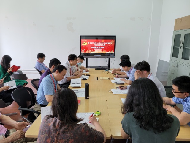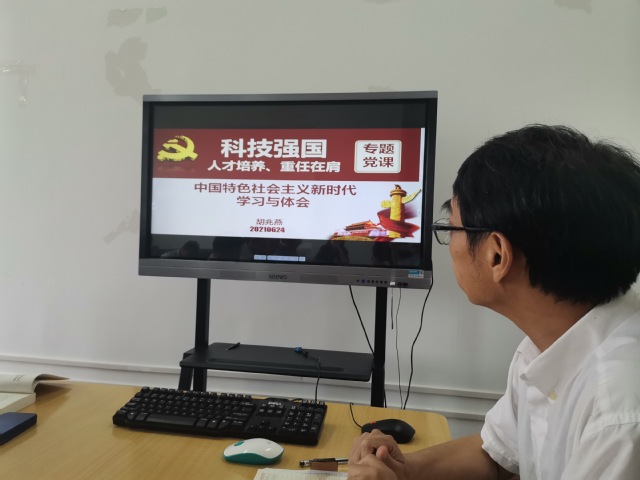 随后,胡兆燕院长讲专题党课,题目为《科技强国、人才培养、重任在肩---中国特色社会主义新时代学习与体会》,对中国特色社会主义概念、新时代中国特色社会主义思想形成的背景、思想内容以及学习心得等方面给大家上了一堂生动的党课。他认为要将政治学习与当前的实际工作结合起来,这样对中国特色社会主义思想的理解会更加深入,并从如何将理论学习与科技强国、人才培养、专业与学科发展相结合等方面谈了自己的体会。