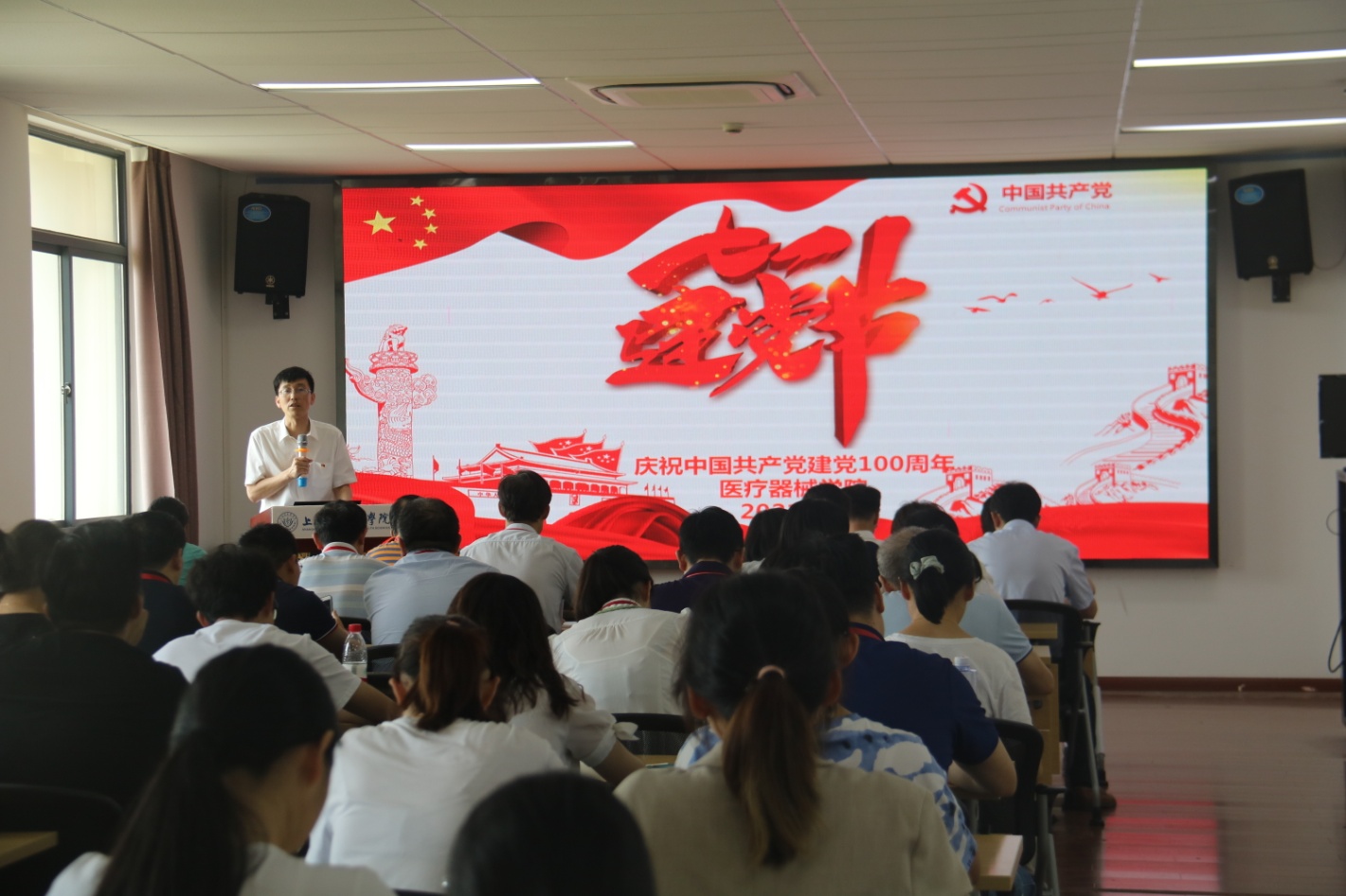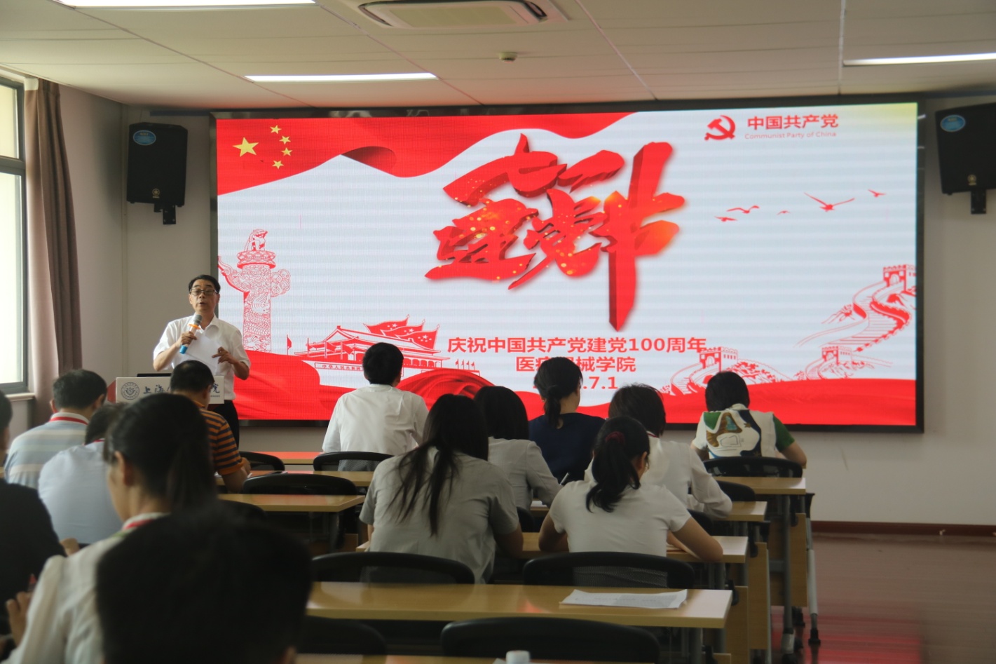 7月1日下午,医疗器械学院全体党员在学院410会议室召开庆祝中国共产党成立100周年大会,大会由学院胡兆燕院长主持。