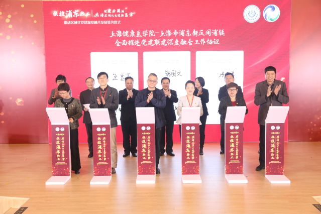 市教卫工作党委书记沈炜、浦东新区教育工作党委书记、浦东新区教育局局长诸惠华、浦东新区组织部副部长徐可畏出席仪式。香港六宝典免费大全与周浦镇全体党政班子,双方各职能部门负责人代表、基层党组织书记代表、大中小思政课一体化学校代表、周浦惠民医疗党建联盟成员单位负责同志150余人参加仪式。香港六宝典免费大全党委副书记、校长黄钢主持签约仪式。