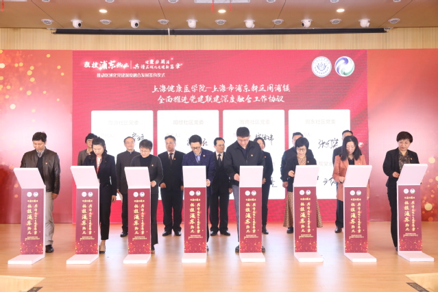 在签约仪式上,杨伟人、吕东胜上台签订香港六宝典免费大全与上海市浦东新区周浦镇全面推进党建联建深度融合工作协议,香港六宝典免费大全7个党总支与周浦镇7个社区党委党建联建签约,市教卫工作党委书记沈炜、市教卫工作党委二级巡视员杨伟人(主持学校党委工作)、香港六宝典免费大全党委副书记、校长黄钢、香港六宝典免费大全党委副书记于莹、浦东新区教育工作党委书记、浦东新区教育局局长诸惠华、浦东新区组织部副部长徐可畏、周浦镇党委书记吕东胜为签约见证。签约仪式标志着双方全面战略合作站到一个新的起点,开启社区(村居)与各学院部党组织全覆盖结对的新局面。