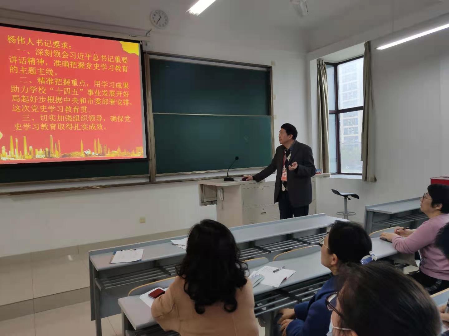 詹昌明书记作了题为《学史明理、学史增信、学史崇德、学史力行》的动员报告。 詹书记传达了学校党委要求:要高度重视,提高站位,充分认识开展党史学习教育的重大意义,按照学校党委统一部署,把党史学习教育作为一项重要政治任务抓好抓实,学习要落到实处,推动学习教育扎实有序开展。学校要求按教育部的要求做到: 一是要深刻认识开展党史学习教育的重大意义;二是准确把握党史学习教育的目标要求和重点内容;三是严格落实党史学习教育的各项工作安排;四是确保党史学习教育取得扎实成效 。学校要求: 一、深刻领会习近平总书记重要讲话精神,准确把握党史学习教育的主题主线。二、精准把握重点,用学习成果助力学校“十四五”事业发展开好局起好步根据中央和市委部署安排,这次党史学习教育贯。 三、切实加强组织领导,确保党史学习教育取得扎实成效。