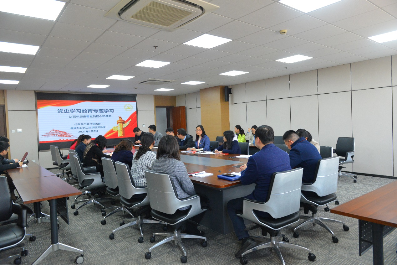 4月8日下午,健康与公共卫生学院党总支与行政第三联合党支部在北苑4号楼902会议室联合举办党史学习教育专题报告会,开展党史专题学习。两个部门的全体教职员工参加学习。会议由公卫学院党总支书记陈泓主持。行政第三联合党支部书记于杨做了《从百年历史看党的初心和使命》的专题辅导报告。