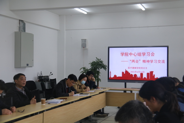 4月14日下午,医疗器械学院在新南苑18号楼506室围绕全国两会精神召开中心组学习会,学院党总支委员、各党支部书记、团总支书记、科级干部、工会主席、教研室主任等参加了会议,会议由学院党总支李晓欧书记主持。