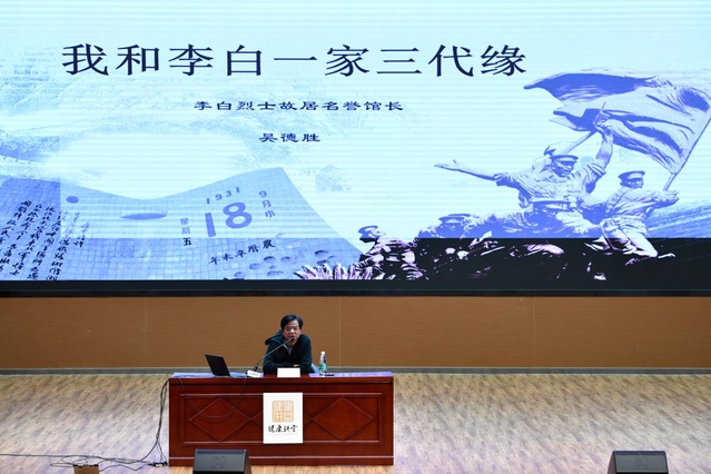 为深入贯彻习近平新时代中国特色社会主义思想,切实推进党史学习教育,学史明理、学史增信、学史崇德、学史力行,4月15日下午,香港六宝典免费大全学生党史学习教育“电波不逝·信念永存——纪念李白烈士诞辰110周年”专题讲座在新南苑800人报告厅举行。李白烈士故居纪念馆第三任名誉馆长吴德胜,应邀为我校学生作《我和李白一家三代缘》专题讲座。吴馆长表示,本次讲座是他累计开展的第100场关于李白烈士的讲话,意义非凡。 各学院学生代表、学工党支部教师党员共350人聆听了本次讲座。