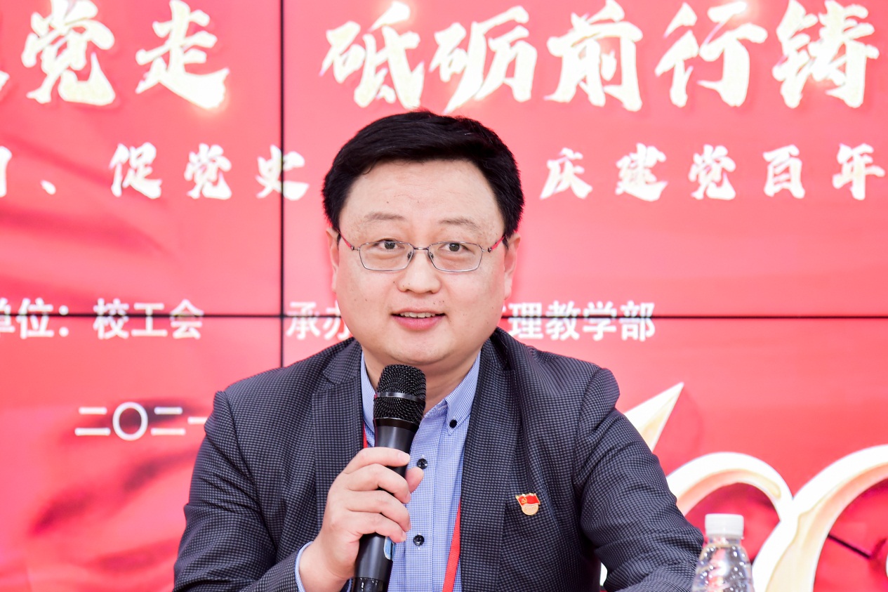 李兆伟结合学校正在开展的庆祝建党100周年系列活动,介绍了本次竞赛活动的背景和意义,从学经典、悟经典、用经典三个方面跟大家做了交流。希望通过学经典促进党史学习教育,沉淀于学习型校园的文化中;通过悟经典,挖掘其思想精髓和精神动力,根植于文明校园的创建中;通过用经典,内化为推动工作的实践,践行于“健行康民”的行动中。耿铭作为本次竞赛的承办学院命题组成员,阐述了竞赛命题的原则,以学以知史、学以致用的目的转化学习成效,章现党的本色,进一步赋予新时代的意义。他还分别从命题的三个维度、题干的设置和分值、竞赛规则进行了介绍,并宣读了竞赛的奖项设置。