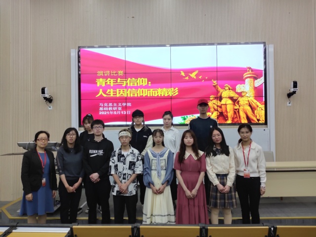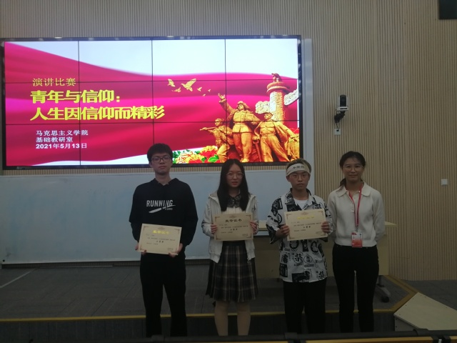 青年时代是信仰形成的黄金时代,是世界观、价值观和人生观形成的最重要时期之一,也是形成终生为之奋斗的信仰的时期。老一辈革命家都是在青年时代就形成了自己的革命理想和共产主义信仰。为帮助进一步确定同学们的人生目标,正确的认清自我价值,在党史学习基础之上,树立科学信仰,5月14日在南苑W100教室举办以“青年与信仰:人生因信仰而精彩”为主题的演讲比赛。基础教研室付卓婧、张静君、郭莹老师作为评委全程观摩比赛。