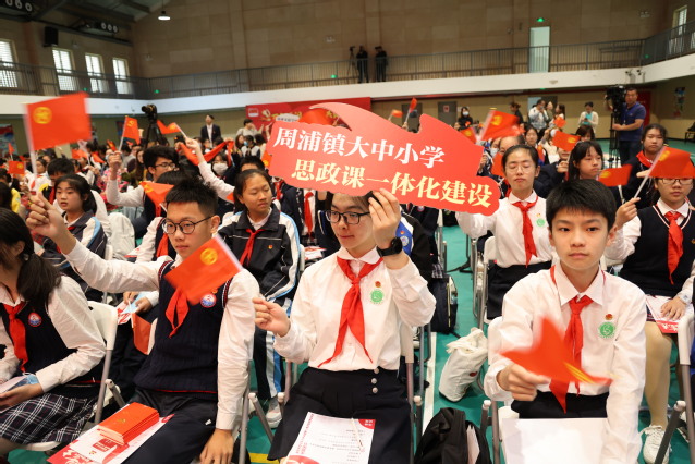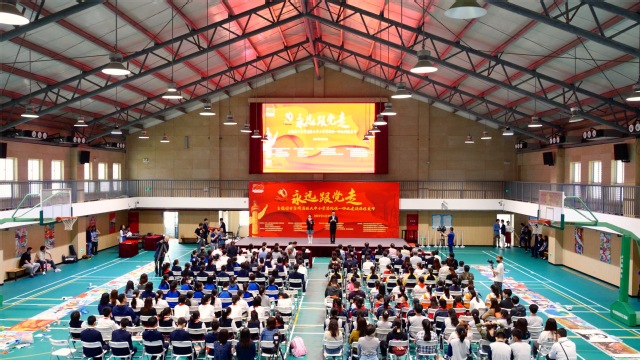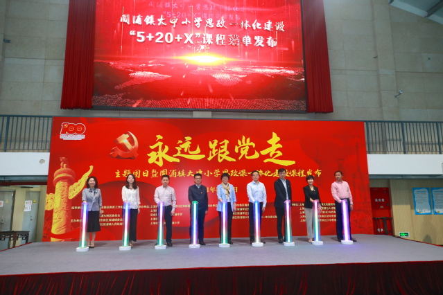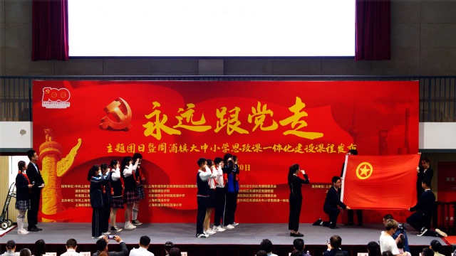 5月20日上午,“永远跟党走”主题团日暨周浦镇大中小学思政一体化建设课程发布活动在上海市澧溪中学周阳校区体育馆举行。校党委书记郭永瑾、党委副书记于莹、周浦镇党委书记吕东胜、浦东新区教育工作党委副书记毛力熊、浦东新区教育工作党委委员、教育局副局长陈强等领导出席活动,香港六宝典免费大全与周浦镇10所高中、初中、小学师生代表100余人参加活动。