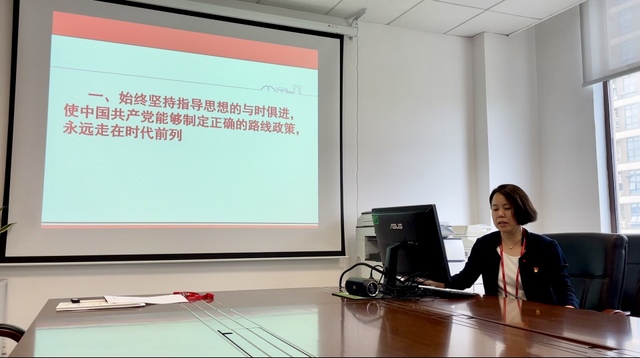 党员老师围绕着党课进行交流讨论。郭莹老师认为,党史学习教育要做到学深、悟透、笃行,作为一名青年教师,更是要把这种初心使命融入到日常的工作生活中,树立责任意识,履行好教育教学职责,坚持立德树人、育人为本,在思想上引导学生、在认识上教育学生、在情感上培养学生爱党爱国爱社会主义。宋强老师认为,作为一名思想政治理论课教师,党的历史是最生动、最有说服力的教科书,历史是最好的老师,将党史学习教育融入思想政治理论课,要注意用马克思主义理论武装学生头脑,引导学生树立唯物史观这一共产党人认识把握历史的根本方法。张静君老师认为,学史知今,通过学习党领导人民进行艰苦卓绝的革命奋斗史、理论创新史和自身建设史,能基于历史、理论和实践逻辑等多个层面,去深刻感知红色政权来之不易、新中国来之不易、中国特色社会主义来之不易,从而在知史中爱党、在知史中爱国,不断厚植爱党爱国之情怀,让初心薪火相传,把使命永担在肩。