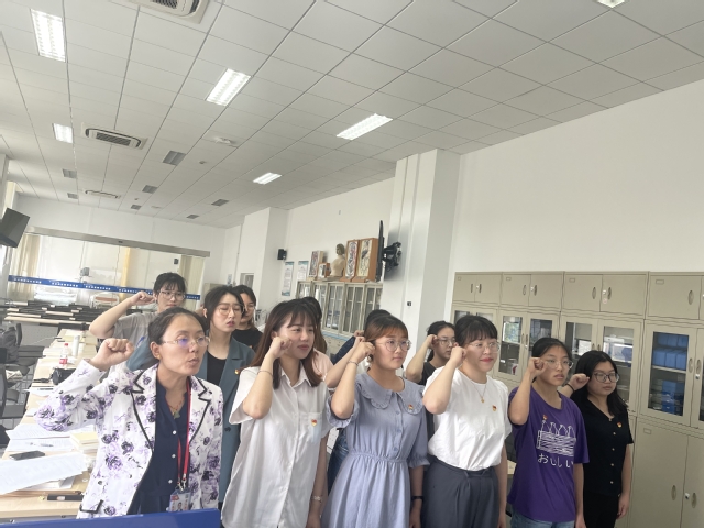 活动最后,全体毕业生党员同志站在党旗面前,高举右手,重温入党誓词,牢记党员的初心与使命。(康复学院党总支)