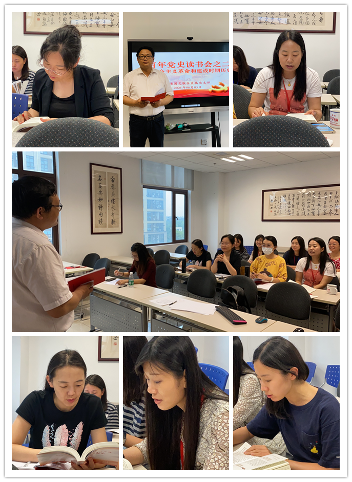 外语党史学习先锋小组张帆老师在领学了“中华人民共和国的成立和新生人民政权的巩固 ”内容后,感慨道新中国的成立结束了半个多世纪的半殖民地半封建的中国历史,在我们党的带领下全国各族人民团结一心开启了新纪元!孙芳老师在领学了“抗美援朝战争、土地制度改革和其他民主改革”这段历史后,表示脑海里又回响起“雄赳赳气昂昂,跨过鸭绿江……”这熟悉的旋律和歌词,多么响亮豪迈!历史再次证明中国人民不畏强暴的钢铁意志和顽强品格必定战胜强权,敢打必胜的血性是我们维护世界和平的坚定决心!王利娜老师在学习了“国民经济的恢复和各项建设的开展”这段历史时结合自身平时时事学习的情况现身说法,对于文化、教育、文艺、科学、医疗卫生等内容进行了详细的举例说明。倪琳娜、陆懿媛老师就社会主义道路的艰辛探索谈了自己学习后的体会,认为这段时期的历史有着复杂的国际国内的社会历史原因,就像小平同志所指出的教训告诉我们不改革不行,不制定新的政治的、经济的、社会的政策不行。